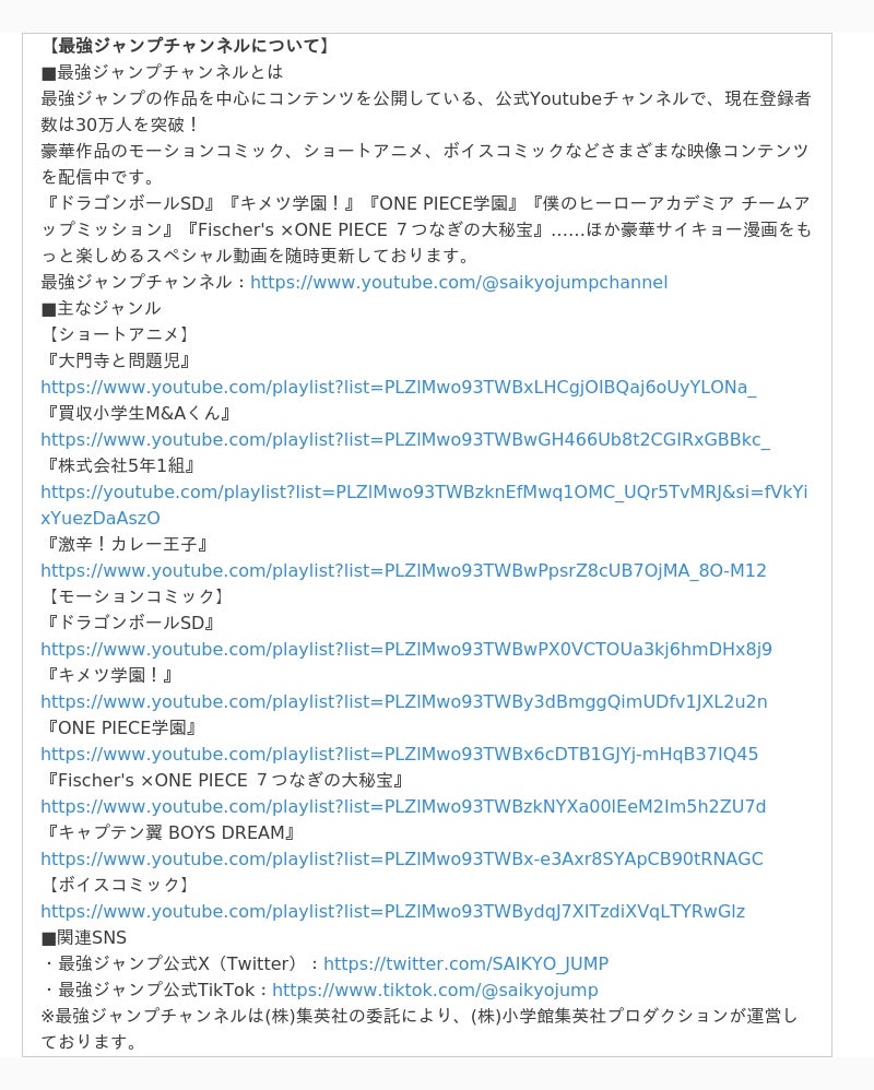 最強ジャンプチャンネル:https://www.youtube.com/c/saikyojumpchannel