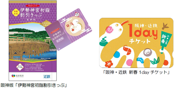 阪神電気鉄道株式会社(以下、阪神)と近畿日本鉄道株式会社(以下、近鉄)では、阪神・近鉄沿線の初詣・初旅をお楽しみいただける阪神版「伊勢神宮初詣割引きっぷ」と「阪神・近鉄新春1dayチケット」を発売します。