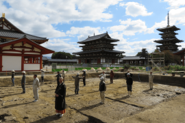 発掘調査現場は薬師寺境内につき、拝観料(大人1000円、中高生600円、小学生200円)が必要となります。