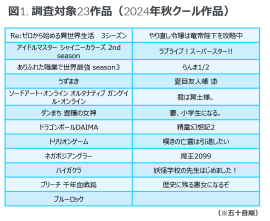 ■調査内容:2024年秋クール(10月~12月)放送の23作品についての視聴実態、視聴きっかけ、利用サービス、