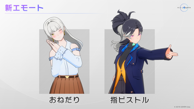 メンテナンス終了後より、新エモート「おねだり」と「指ピストル」を販売します。