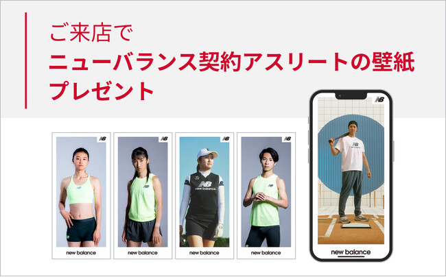 ご来店いただいたお客様限定でニューバランス契約アスリート5名のスマートフォン用壁紙をプレゼントいたします。ご来店時にスタッフまでお声がけください。