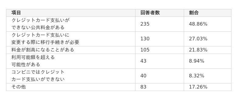 公共料金のクレジットカード払いに関する独自アンケート調査