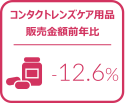 2024年7-9月のコンタクトレンズケア用品の販売は、金額前年比12.6%減とマイナスで推移した。店頭では11.5%減、インターネットは13.8%減となり、前期に続き各チャネルで二桁の減少となった。