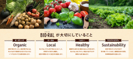 ドイツ語「BIOLOGISCH(有機の)」と英語「NATURAL(自然)」からなる造語。“素敵なナチュラルライフスタイルを通じて、心も体も健康で美しく豊かな毎日を過ごしてもらいたい”と願うスーパーマーケットです。「オーガニック・ローカル・ヘルシー・サステナビリティ」をコンセプトに、ナチュラルライフスタイルをご提案し、お客様の心と体の健康と豊かな日々をお手伝いできるよう魅力ある商品を提供しています。