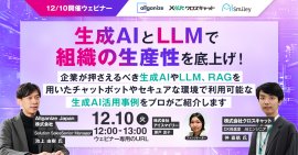 【12/10開催ウェビナー】生成AIとLLMで組織の生産性を底上げ! 企業が押さえるべき生成AIやLLM、RAGを用いたチャットボットやセキュアな環境で利用可能な生成AI活用事例をプロがご紹介します