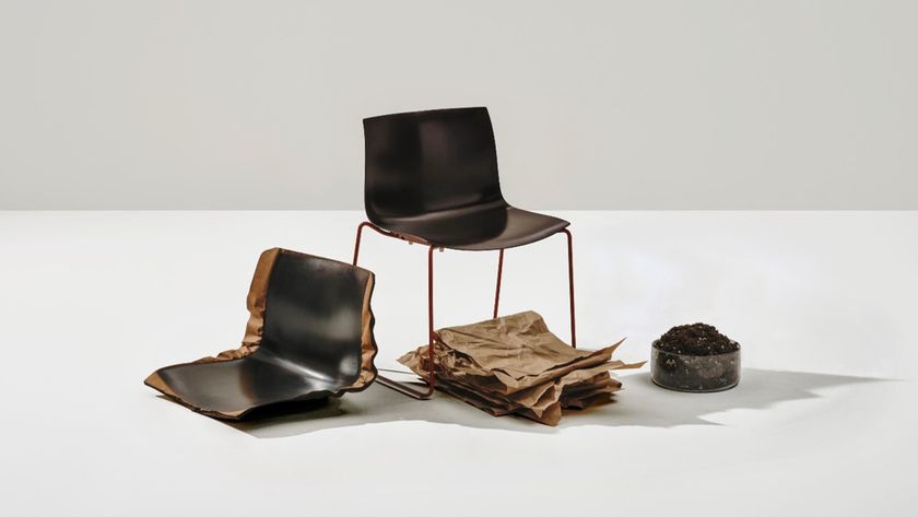 長年愛されているArperのアイコンチェア「Catifa」に最新の技術が融合して誕生したのが「Catifa Carta(カティファ カルタ)」。そのシェルは廃棄木材から生まれた29枚の再生紙を圧着成型して作られたもの。
