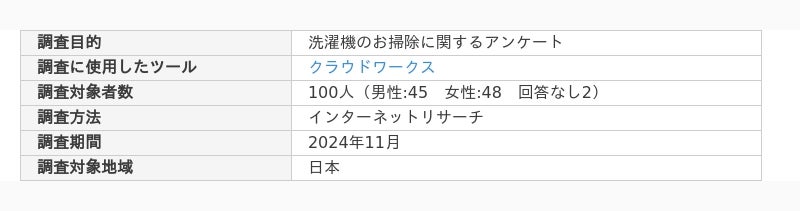 おうちにプロでは、洗濯機のお掃除にお悩みの方により有益な情報を提供するために、「洗濯機のお掃除に関するアンケート」を実施しました。アンケート調査の概要は以下の通りです。