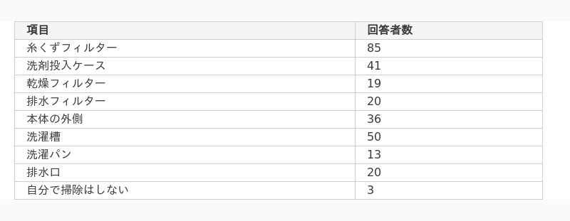 洗濯機の自分で掃除する箇所はどこですか?(複数回答可能)