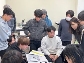 今回のイベントの最大の特徴は、クイズイベントの企画・準備から当日の運営まで、全て学生が主体となって活動をしているという点です。11月9日(土)に開催されたホームゲームにおいては、実際に5名の学生が会場の下見を行い、出展スペースの規模感や来場者動線調査などを実施。また、学内での準備においては、ご来場いただいたお客様へ出題するクイズの作問を行うクイズチームと、イベント当日に配布を行うオリジナルステッカーやチラシのデザインを考えるデザインチームの2つのチームに分かれて、11月30日(土)のイベント実施に向けて準備を進めています。どちらのチームも学生同士で意見を出し合い、今回のイベントを成功させようという意気込みを感じられました。
