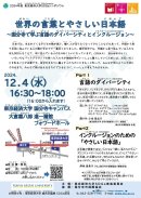 第1部では外国出身の方々から、母国の多様な言語に関するお話や日本語を学ぶ際に経験した困難などを、会場からの質問を交えながらうかがうことを予定する。第2部では私たちが円滑なコミュニケーションをはかるために、「やさしい日本語」がなぜ必要なのか、またそれはどういったものか、具体例などを用いて共に学ぶ。(事前申込制、参加費無料)