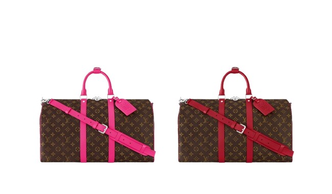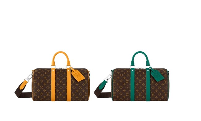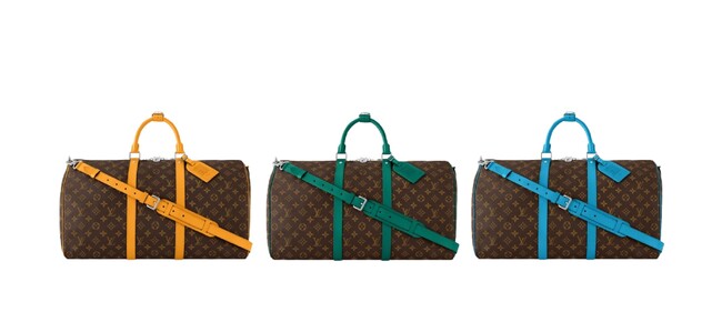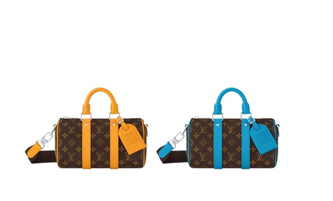 モノグラム・マカサー キャンバスとカラーレザーで仕上げた「キーポル・バンドリエール 25」。