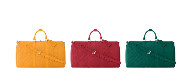 「ルイ・ヴィトン カラーマニア」コレクションの第2弾として登場し、モノグラム・マカサー キャンバスにカラフルなレザーのトリミングを施した「キーポル・バンドリエール 45」。レザーのサイドバンドとトップハンドル、取外し可能なネームタグ & ショルダーストラップにあしらわれたアクセントカラーが、定番の旅行鞄に洗練された彩りを添えます。