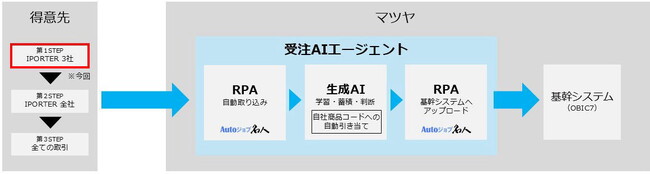 今回実施する実証実験では、「IPORTER」経由で受注している得意先のうち3件について、これまでの取引データを受注AIエージェントに学習・蓄積させたうえで、新たに類似の取引が発生した場合は自動処理を行うことを目的としています。