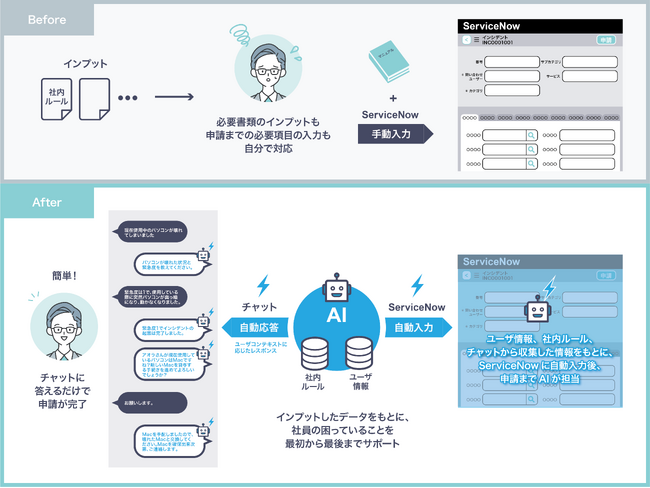 ServiceNowなどのローコードソリューションの普及により、従来はメールやExcelで行われていたバックオフィスの業務を幅広くデジタル化することができるようになりました。一方で、ローコードソリューションの適用範囲を広げていくと、システムへの入力作業が増え、操作が複雑化してしまいます。