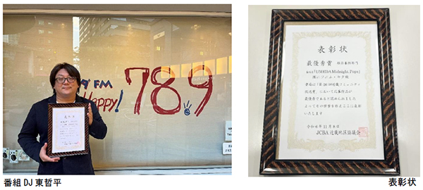 第26回JCBA近畿コミュニティ放送賞 娯楽番組部門 最優秀賞 受賞!! ウメダFM Be Happy!789「UMEDA Midnight Pops」