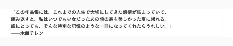 「制服を着ているときにしか聴こえない夏の音や、大人にも子供にも見えない夏の映像を、私たちはちゃんと日々感じながら生きていた。」