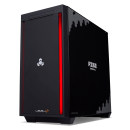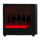 前面の水冷システム内側に最大3基、天面と背面に3基、最大6基のLEDファンを搭載。上質なLEDライティングとドズル社メンバー5人のシルエットが楽しめる左側面のオリジナルガラスパネル。