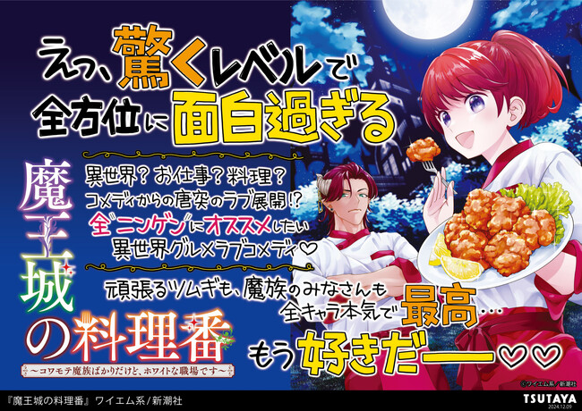 株式会社新潮社の漫画作品『魔王城の料理番~コワモテ魔族ばかりだけど、ホワイトな職場です~』が、TSUTAYAの“この冬推したい”オススメ漫画として展開されます。