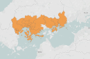 広島県 :広島市中区、広島市東区、広島市南区、広島市西区、広島市安佐南区、広島市安佐北区、広島市安芸区、広島市佐伯区、呉市、三原市、尾道市、福山市、大竹市、東広島市、廿日市市、江田島市、府中町、海田町、熊野町、坂町