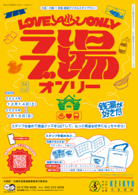 京浜急行電鉄株式会社(本社:横浜市西区,社長:川俣 幸宏,以下 京急電鉄)は,2024年12月14日(土)から2025年2月16日(日)まで「ラブ湯オンリー LOVE YOU ONLY ~銭湯が好きだ!~」を実施いたします。
