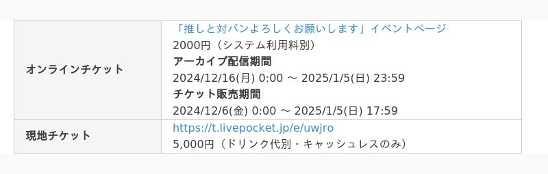 12/14(日)開演は15:00から、オンライン配信の視聴チケットはV-TIPS上のイベントページから購入可能