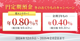 住信SBIネット銀行、「円定期預金 冬の贈り物キャンペーン」実施のお知らせ