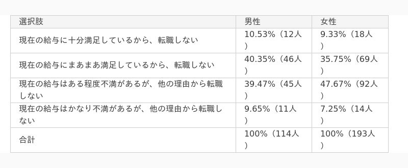 「現在の給与に十分満足しているから、転職しない事に凄く満足しています」