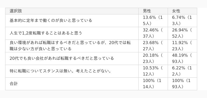 - - 転職に対する考え方に明確な男女差