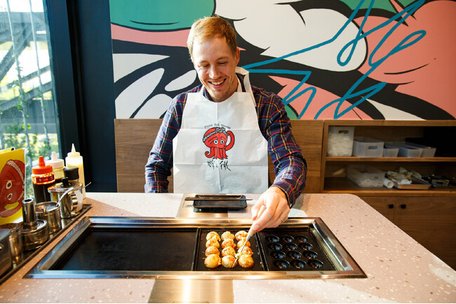 たこ焼きを楽しむタイムアウト東京副編集長のイリ・サーリネン PHOTO: Keisuke Tanigawa