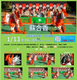 多度雅楽会(館主:田中松緑)主催、「新春雅楽公演(特別編)『蘇合香』」が2025年1月13日 (月・祝)に豊洲シビックセンターホール(東京都江東区豊洲2-2-18)にて上演されます。チケットはカンフェティ(運営:ロングランプランニング株式会社、東京都新宿区、代表取締役:榑松 大剛)にて発売中です。