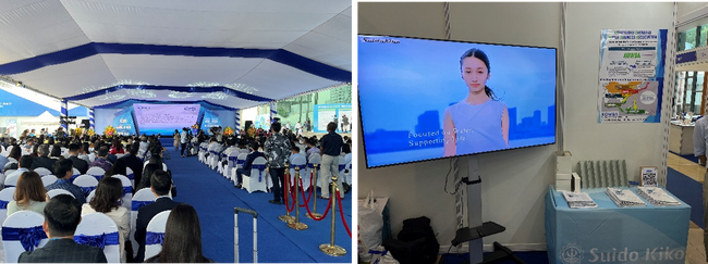 ベトナム上下水道協会主催のもと、2022年11月にハノイ市で初めて開催され、今回が3回目となります。展示会では、水・環境分野の技術・製品展示会も併せて開催され、世界各国の企業やサプライヤーが出展し、各種ソリューションや先進技術を紹介しました。水道機工では、CM動画やキービジュアル映像、主力製品を映像にて紹介し、紹介製品のカットモデルの展示を行いました。