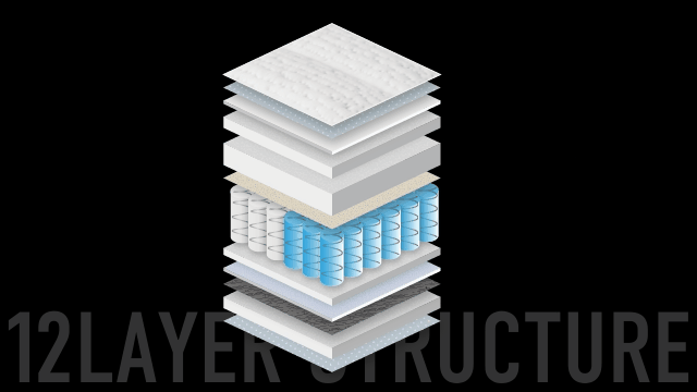 - 高反発ウレタンを上下に配置した12層構造で絶妙なかたさとやわらかさを両立
