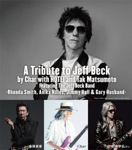 ジェフ・ベックの自宅でセッションをするなどの親交もあったCharが今回のステージのホストを務め、80~90年代日本ロックの発展&成熟期シーンを担い、現在はイギリスに拠点を置いて活躍する布袋寅泰、そして同じくL.A.など世界でも活躍しているB’z松本孝弘も、自身がリクエストしたジェフの楽曲で参加。また来日するバンド・メンバーたちも、セッションを楽しみにしているとメッセージを寄せてくれた。