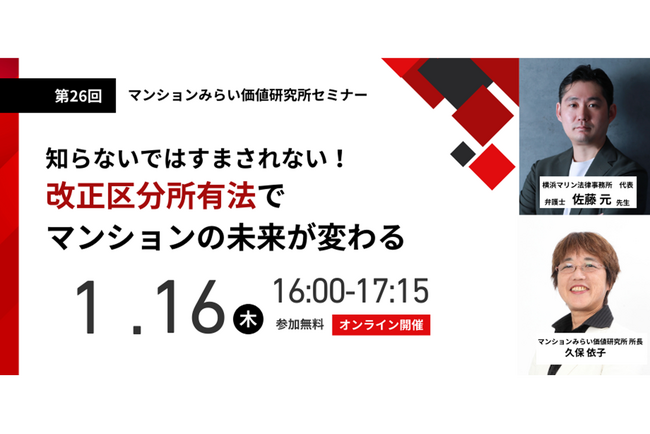 『改正区分所有法でマンションの未来が変わる』1月16日(木) 無料WEBセミナー(マンションみらい価値研究所主催)