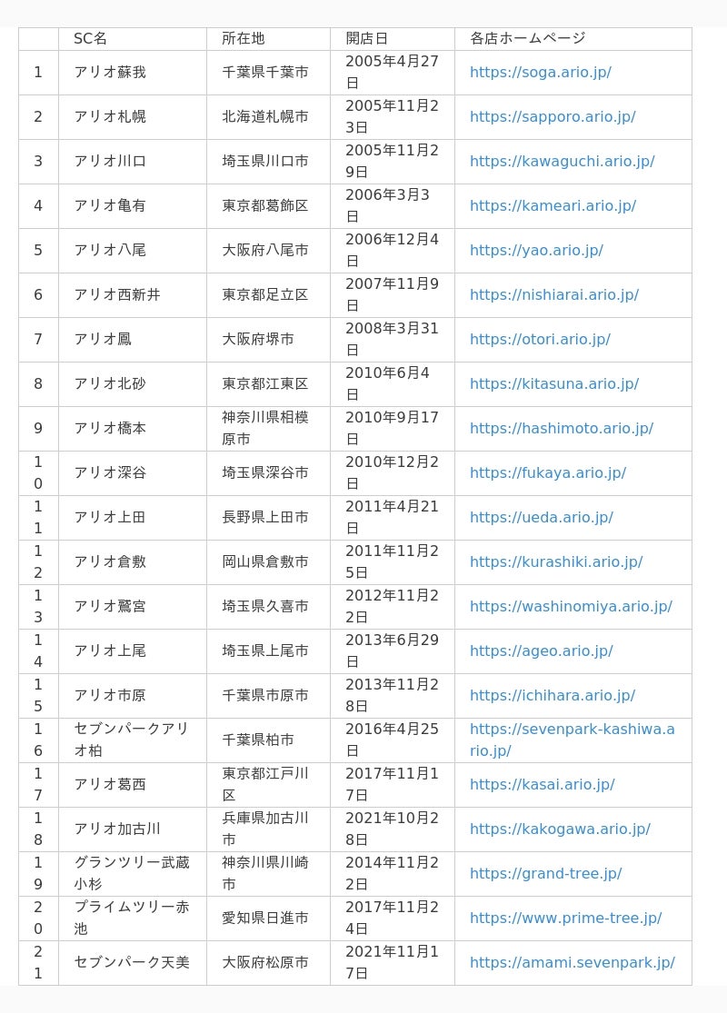 アリオ・グランツリー武蔵小杉・プライムツリー赤池・セブンパーク天美の新しい展開にご期待ください。
