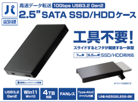 パソコン工房・グッドウィルを運営する株式会社ユニットコム(代表取締役:端田 泰三、本社:大阪市浪速区)は、2024年12月26日(木)より、パソコン工房 WEB サイトにて、パソコン工房セレクト商品『2.5インチ SATA SSD/HDD ケース』2製品を販売いたします。