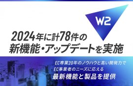 最先端ECプラットフォームを展開するW2株式会社(本社:東京都中央区、代表取締役:山田大樹、以下W2)は、2024年に計78件の新機能開発・アップデートを実施しました。これにより、お客様の利便性を大幅に向上させるとともに、サイトユーザーの利用体験を改善し、EC事業の売上向上および運営効率化に貢献したことをお知らせいたします。