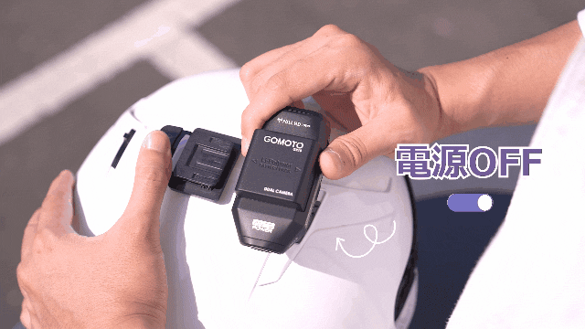 3分ほど放置すると自動的に電源オフ撮影終了になり、ヘルメットを持ち上げれば自動で電源オン撮影開始に。物理ボタンは一切なく、ボタン操作でオン/オフを切り替える必要はありません。