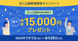 2025年1月1日(水)以降に当社の法人口座を解約したことが確認できるお客さまは、キャンペーンの対象外となります。