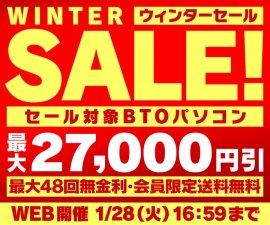 パソコン工房WEBサイト、セール対象BTOパソコンが最大27,000円引きの『ウィンターセール』開催中