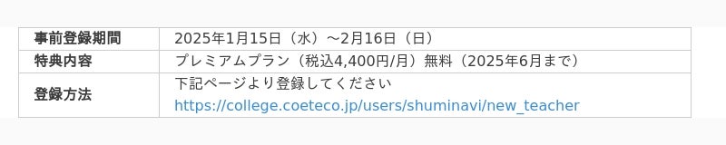「趣味なびプラス」は、2025年2月17日(月)より提供を開始いたします。それに先立ち、事前登録をしていただいた講師の方向けに、プレミアムプラン(税込4,400円/月)を2025年6月まで無料でお試しいただける特典をご用意いたしました。この機会に、「趣味なびプラス」の多様な機能を最大限に活用し、オンラインスクール運営における可能性を広げていただきたいと考えております。