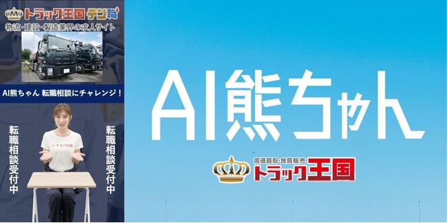 物流・建設・製造業界特化の求人紹介サイト「トラック王国テン職」でも「AI熊ちゃん」を配信することで、気軽に業界の転職・求人情報に触れてもらい、求職者がより自分に合った環境を見つけられるようサポートしていきます。