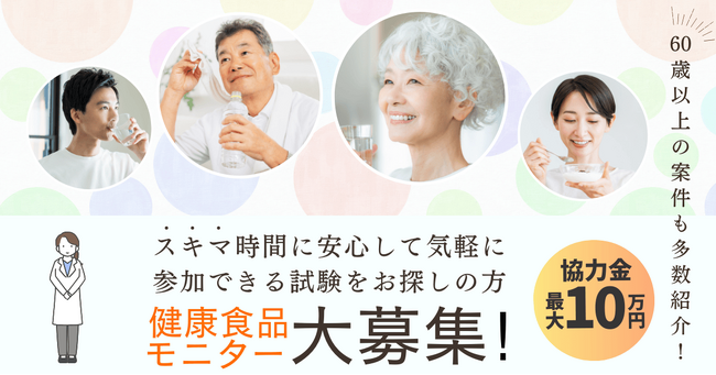 【謝礼最大6万円】60歳以上の健康食品モニター参加者を大募集
