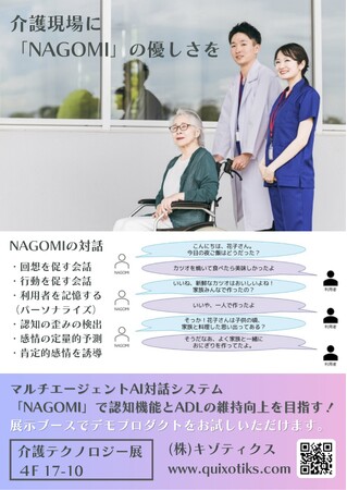 Quixotiks(キゾティクス)が独自開発した介護分野特化のAI対話システム『NAGOMI』デモプロダクトを東京ケアウィーク'25・介護テクノロジー展4F・17-10にて出展します