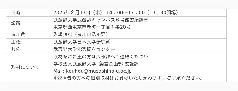 【武蔵野大学】2月13日(木)に日本文学研究所 公開講座 「土岐善麿 新作能の世界」を開催!