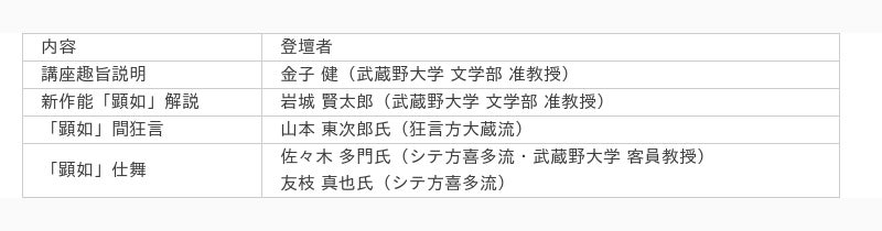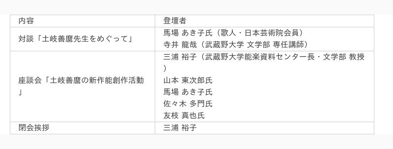 本講座では、第1部で新作能「顕如」の一部(間狂言と仕舞)を上演します。第2部には、大蔵流狂言方の山本 東次郎氏(人間国宝)と歌人の馬場 あき子氏(日本芸術院会員)が登壇し本学文学部日本文学文化学科初代主任教授であった土岐 善麿が創作した数々の作品について解説や座談会を交えて語ります。