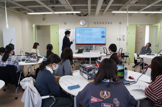 授業の中で、担当の太田裕治副学長は「車に人が乗るとどうなるか」という身近な例を用いて、制御の必要性について問いかけました。学生たちとの対話を通じて、「車が遅くなる」という現象から、それを補正するフィードバック制御の仕組みを解説。これにより、普段何気なく使用している自動車技術の中に組み込まれている高度な制御システムや自動運転技術についての理解を深めることができました。