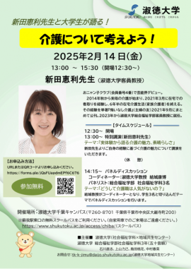 【淑徳大学特別公開講座】新田恵利先生と大学生が語る! 介護について考えよう!