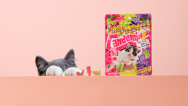 カンデミーナシリーズ特有の独特な形状から生まれる“ニャみつきハード”な弾力食感と“ネコパンチ力”のあるフレーバーを、パッケージにちりばめられた猫にまつわる小ネタとともにお楽しみください。